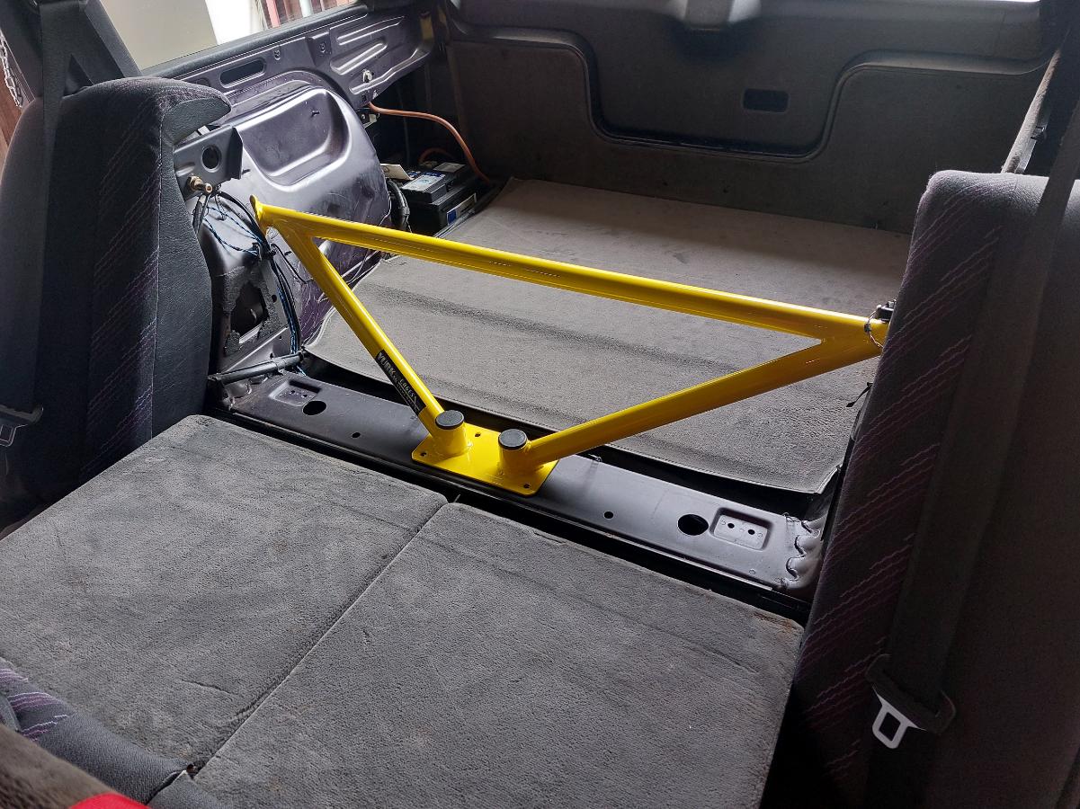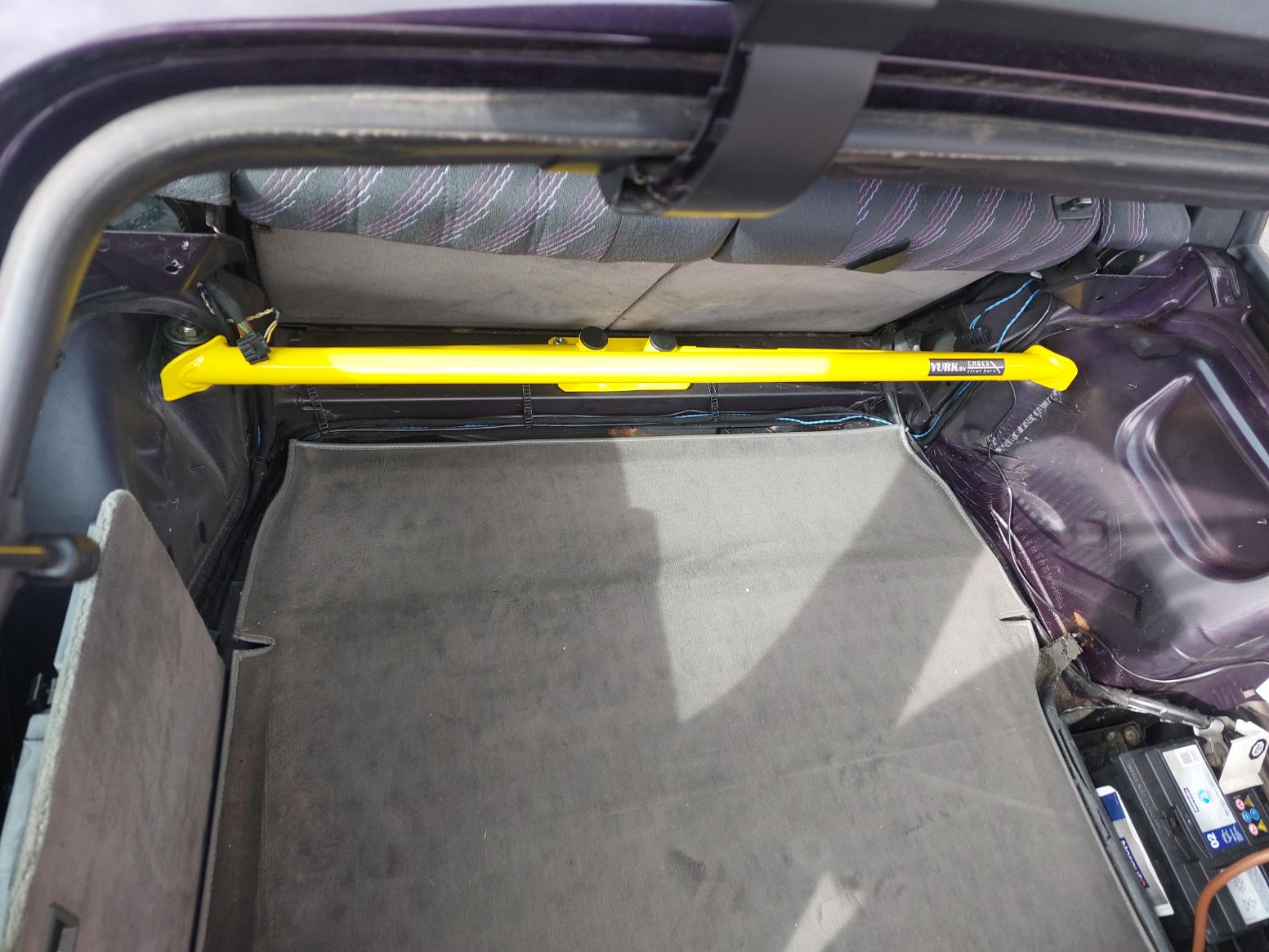 Die Strebe wird komplett verschraubt und verstärkt damit die Hinterachse sowie die Domaufnahmen.