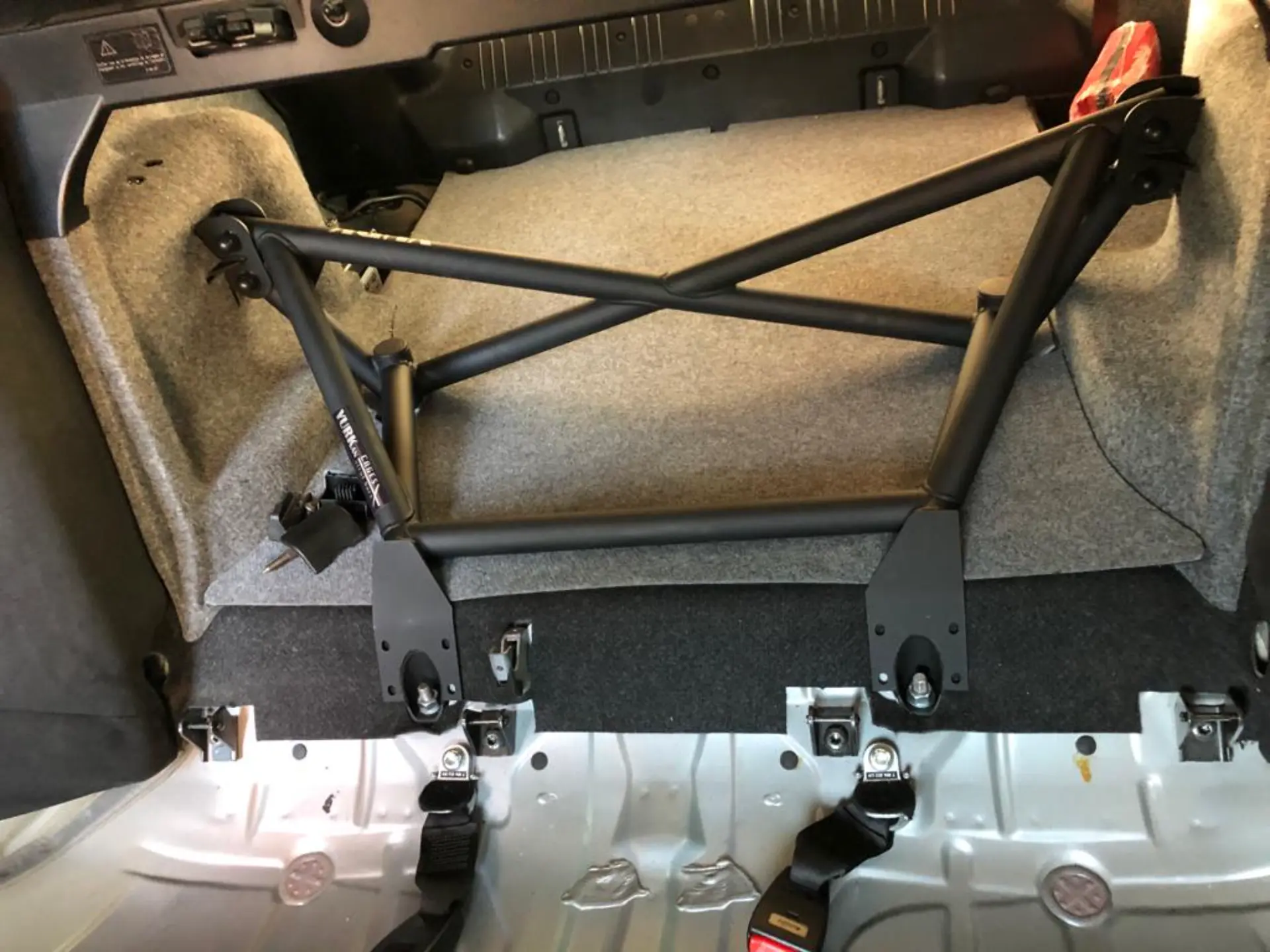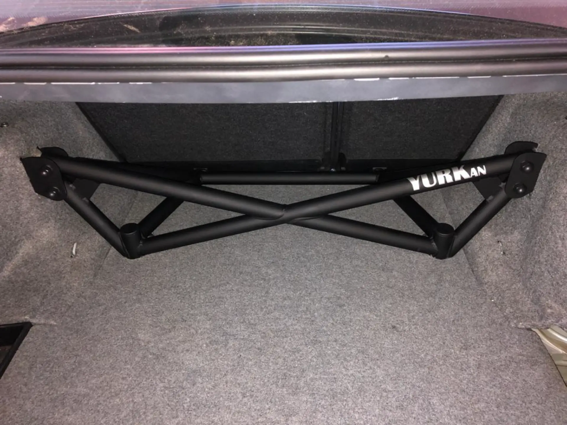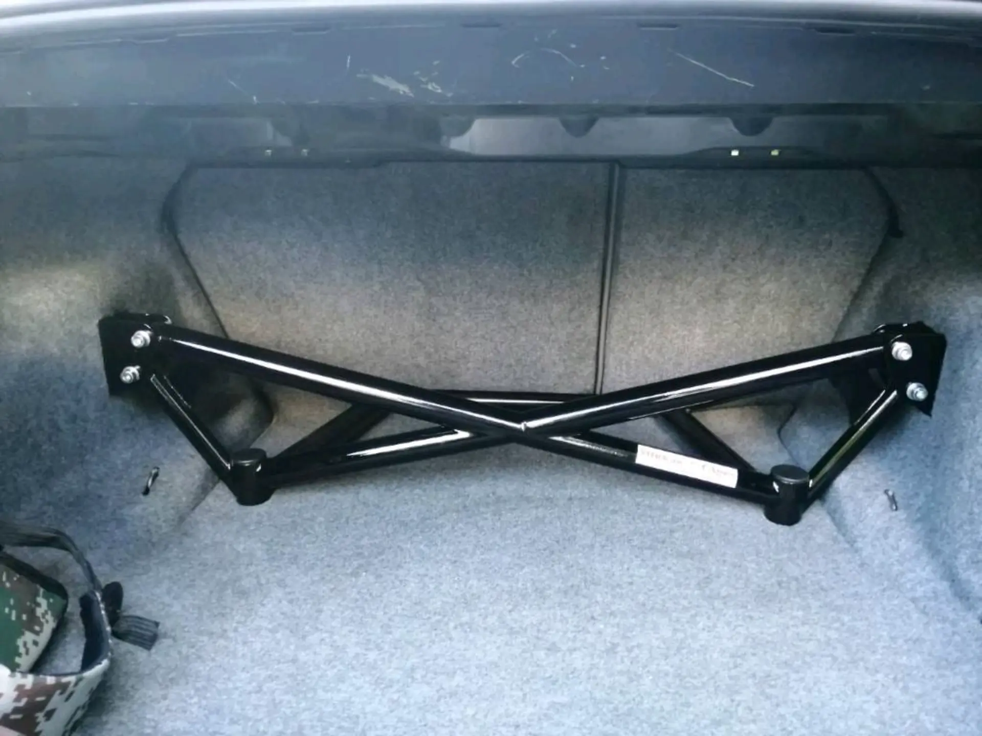 Die Verstärkung besteht aus drei Teilen, welche an allen vier Achsaufnahmepunkten fixiert werden. Für die Nutzung auf Rennstrecken und Straßen.Alle Teile, sowie die Rücksitzbank, verbleiben nach dem Einbau an ihrem ursprünglichen Platz.