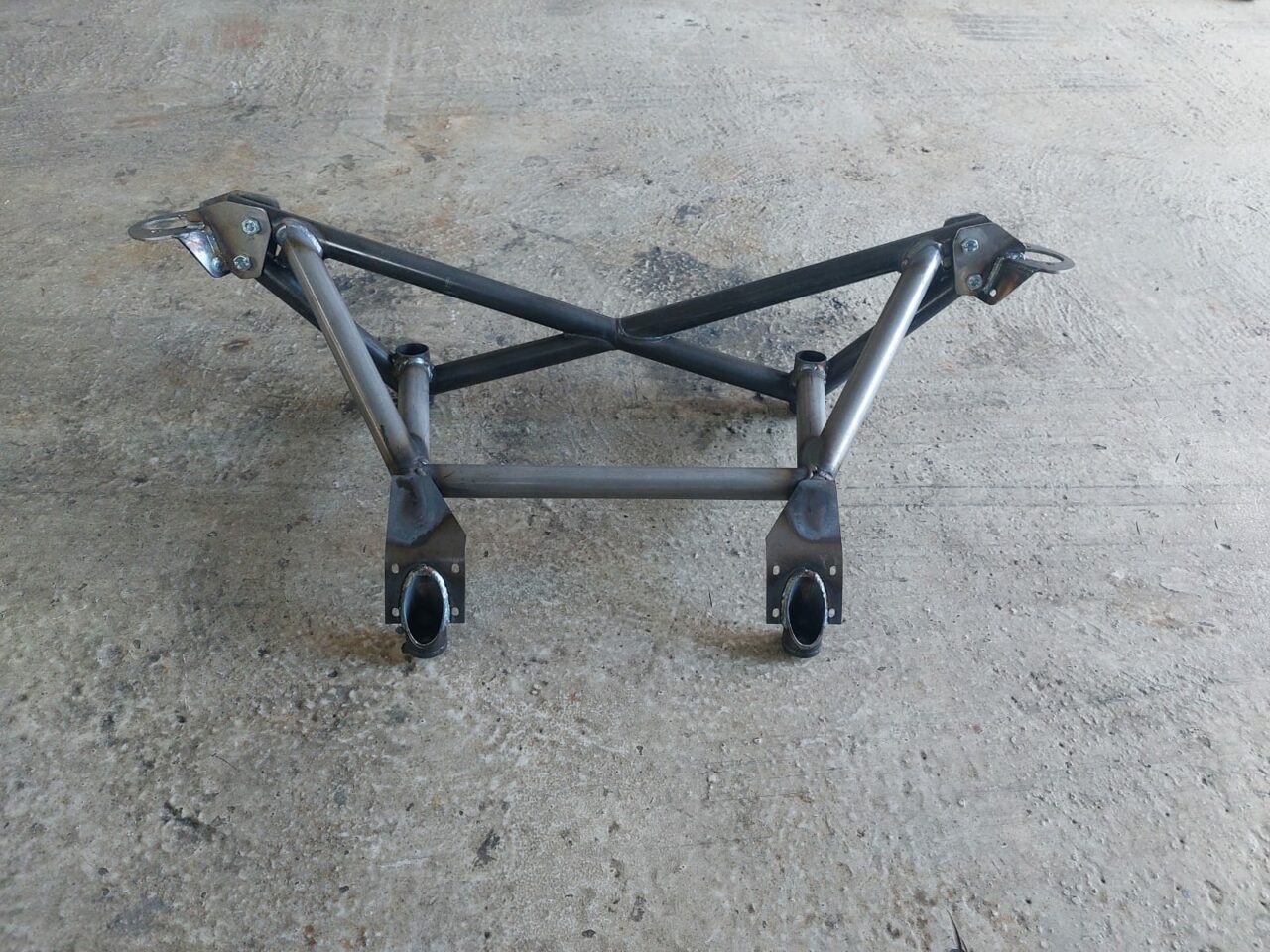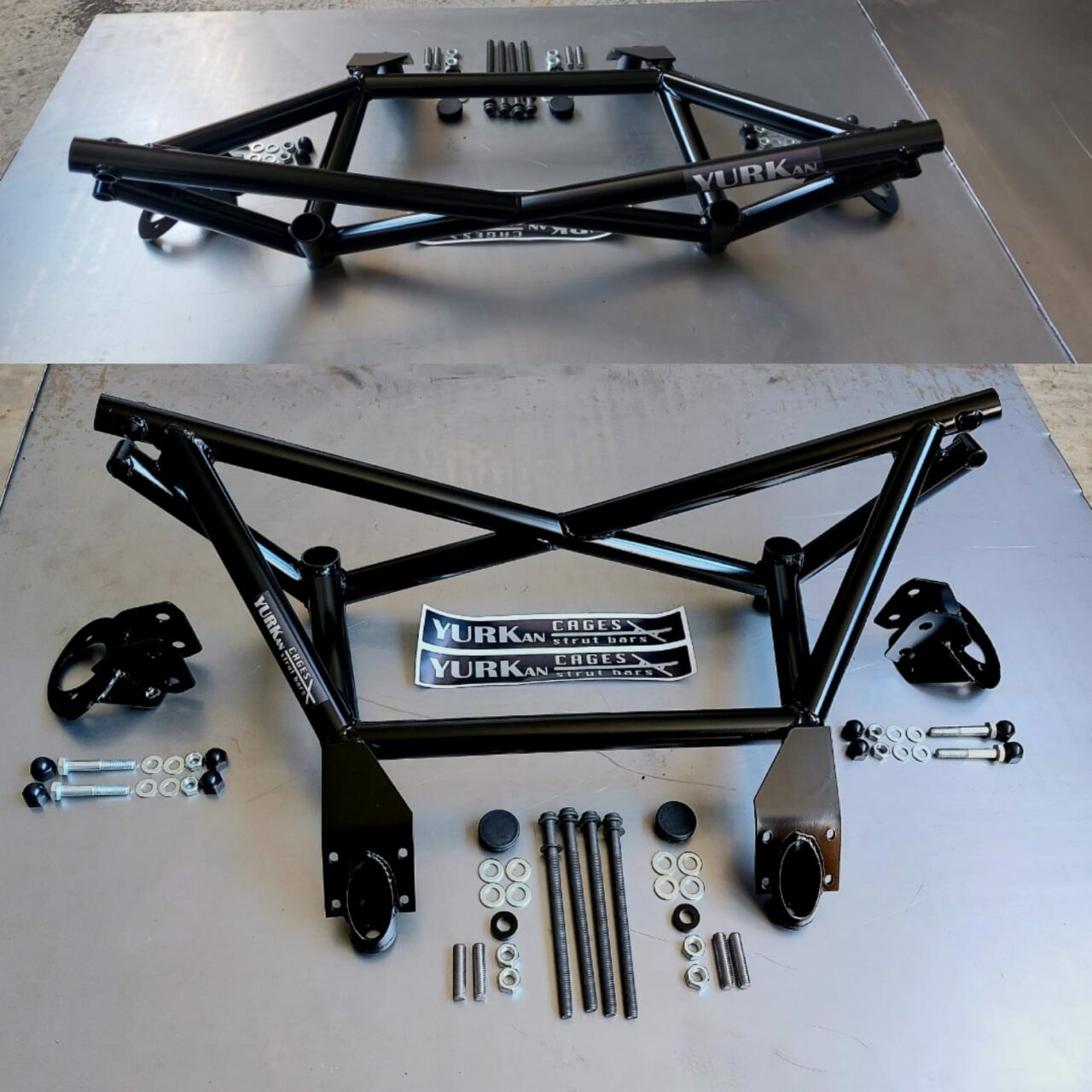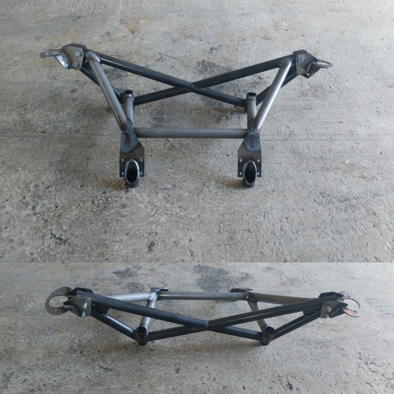 A 3-part reinforcement on all four axle mounts, intended for racing vehicles but also road vehicles.